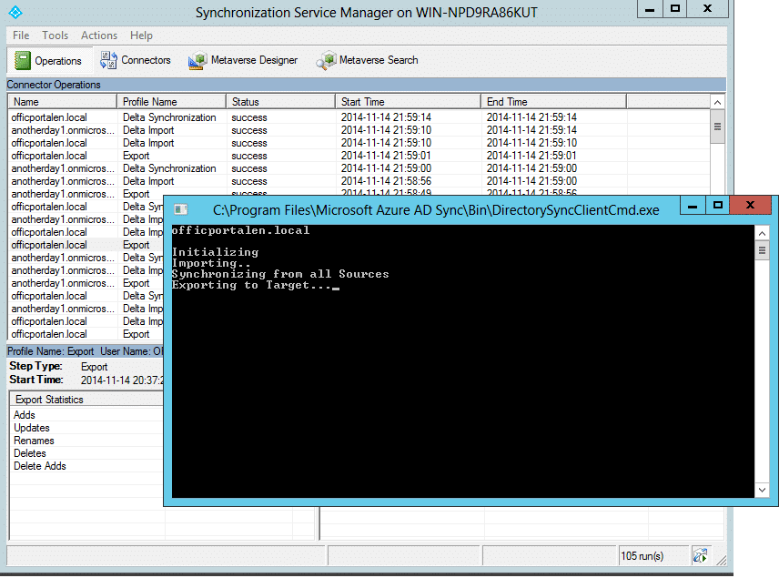 DirSync har fått en värdig ersättare i Azure Active Directory Sync. Förutom Multi Forest stöd och möjlighet till AD filtrering genom attribut har man nu ersatt .ps skriptet för manuell synkronisering med en .cmd fil. Du hittar filen under C:\Program Files\Microsoft Azure AD Sync\Bin….leta efter ”DirectorySyncClientCmd”! Vill du migrera till AADSync kan du ta en titt på detta inlägg! Vill du flytta från DirSync eller FIM till AADSync… här finns mer info!