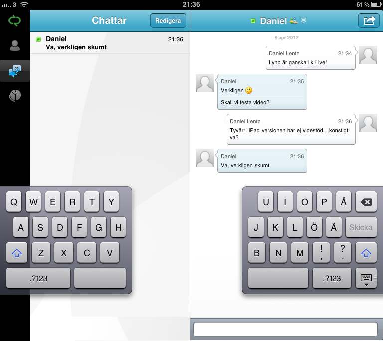 Den här gången handlar det om hur vi kan använda iPad för elektronisk chatt…d.v.s. Skype, Messenger och Lync.