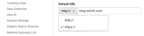 Här handlar det om att du justera nuvarande ”tracking code” för att tala om att din sida numera anropas på https. Detta gör du i din Anlytics Admin panel.