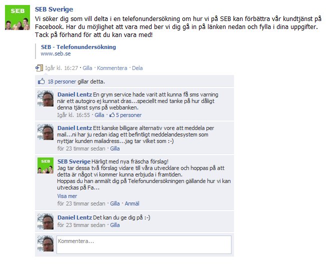 Känn efter vad du behöver och ta en titt på just vad din bank kan erbjuda, saknar du något kan du alltid kolla om de finns representerade på Facebook där du kan göra din önskan hörd och kanske uppfylld :-) (ovan bild)