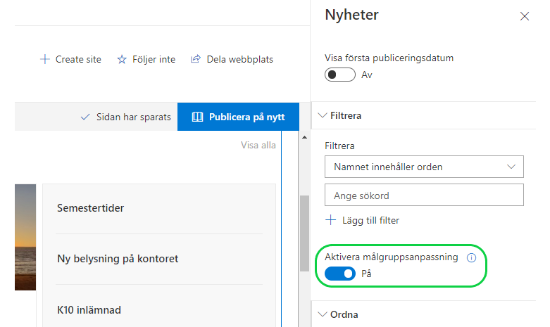 Det är många som har väntat med att migrera till Moderna Sidor i SharePoint då den saknat funktioner som man helt enkelt inte ville vara utan….en av dessa är målgruppsanpassning av information. Funktionen gör det möjligt att hålla informationsflödet fokuserat och rent….en viktig del i dagens massiva informationsflöde.