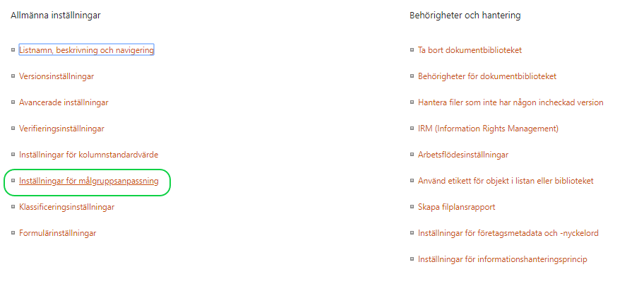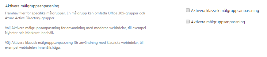 För att få igång målgruppsanpassningen i tidigare versioner krävdes det nästan en ”Master”, nu har man lagt stor möda på att förenkla processen. Målgruppsanpassning aktiveras fortfarande på biblioteksnivå, väl aktiverat kan du bestämma hur nyheter och filer visas för olika användare.
