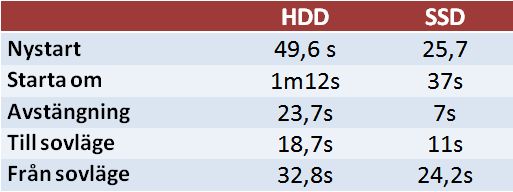 Övre stapel: SSD Nedre stapel: HDD, notera åtkomstiden!