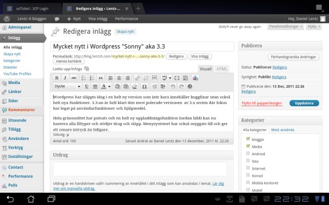 Under huvet märks även prestandaförbättringar på permalänkar och kategorier, inläggsredigeraren har fått ett ansiktslyft och ett nytt API…resten kan du läsa om här!