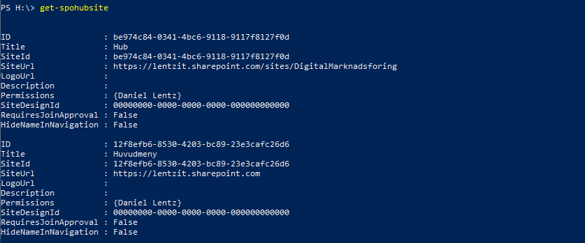 Ta reda på ditt HUBSite ID om du har en sådan! Detta gör du med Get-SPOHubSite