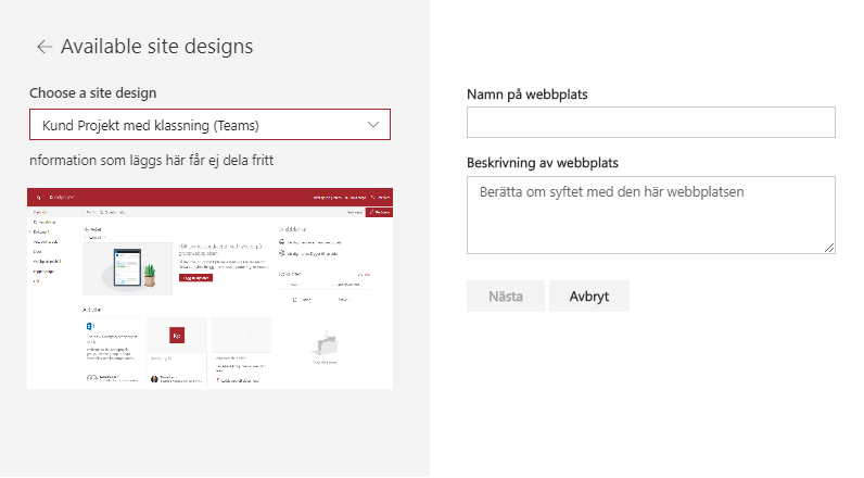 SharePoint Online tillhandahåller två tydliga spår för hur en sida kan se ut och fungera. Designen ”Gruppwebplats” är lämpad för samarbete (t.ex. ett projekt) och ”Kommunikationswebplats” passar för enkelriktad kommunikation (t.ex. ett intranät). Att skapa en anpassad design, funktion och innehåll i dessa spår kräver både powershell- och json-skriptning då det saknas ett grafisk gränssnitt för det. Tröskeln är med andra ord ganska hög för en vanlig användare. Är du sugen på att börja med ”SiteDesign” som anpassningen kallas kan du följa detta inlägg