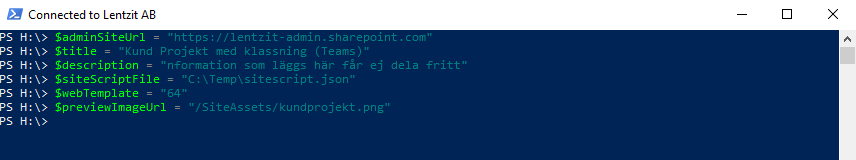 $adminSiteUrl = "https://lentzit-admin.sharepoint.com"