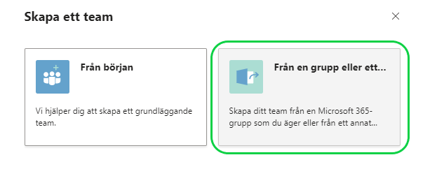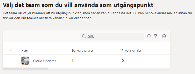 Välj det team som du vill lista som en mall…avsluta med nästa