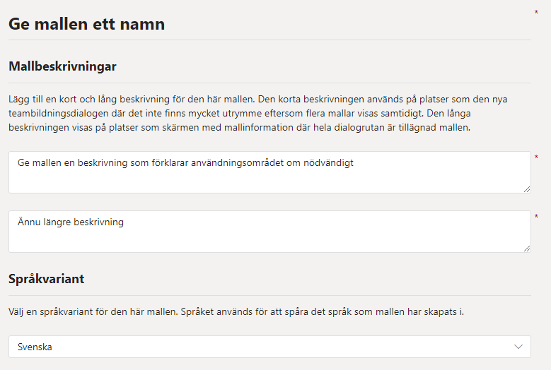 Ge nu den nya mallen ett eget namn och en beskrivning