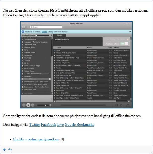 Först ut var rss som visar utdrag från en sida som man sedan klickar vidare i om man blev intresserad. (nedan bild) fastän man prenumererar på nyhetsflödet får man ej reda på om något har uppdaterats per automatik.